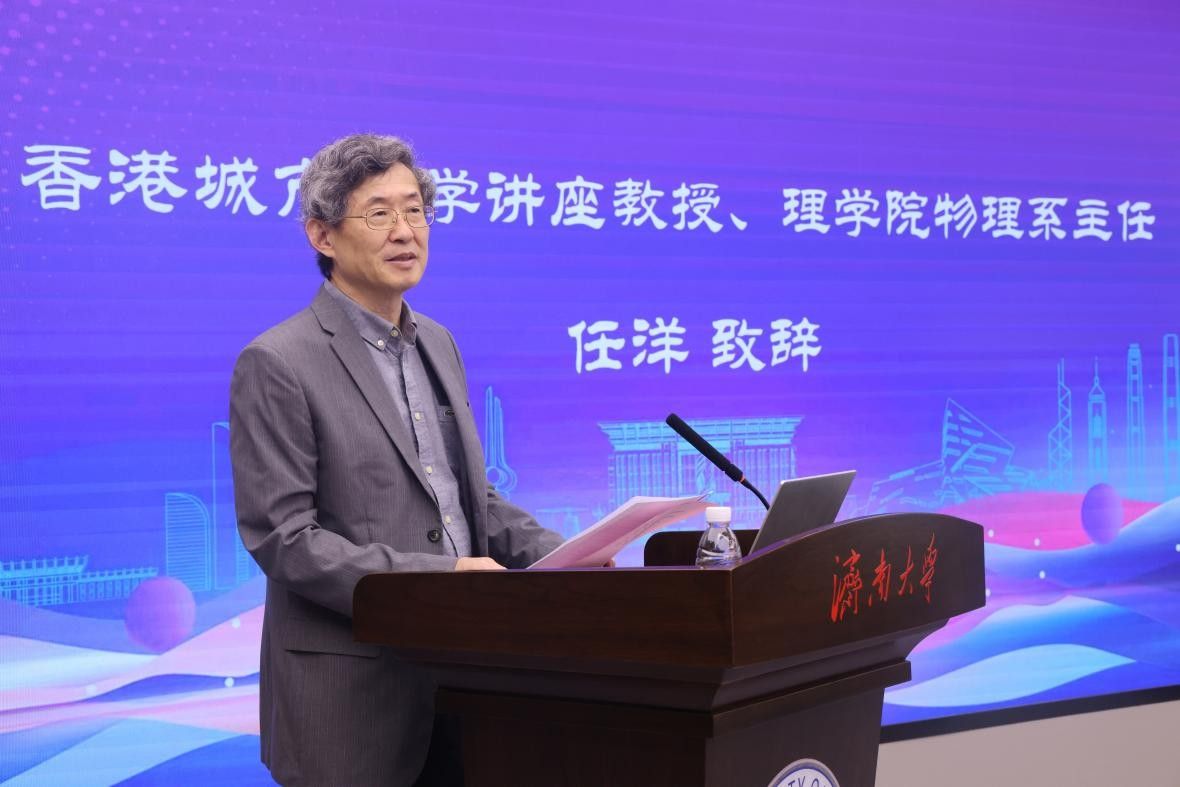 香港城市大学讲座教授、理学院物理系主任任洋代表学校致辞,他表示此次论坛是继今年春季两校成功互访并签署合作协议后,迈出的实质性一步。为将合作蓝图转化为具体成果,任洋提出了一系列构想:构建科研平台,优化“联合实验室—设备共享—教师互访”的全流程合作模板;深化人才培养,将推动研究生短期访学、优先录取济南大学毕业生攻读硕博学位,并积极探索“3+1”本硕双学位项目与联合暑期学校,旨在建立全方位、立体化的交流机制。