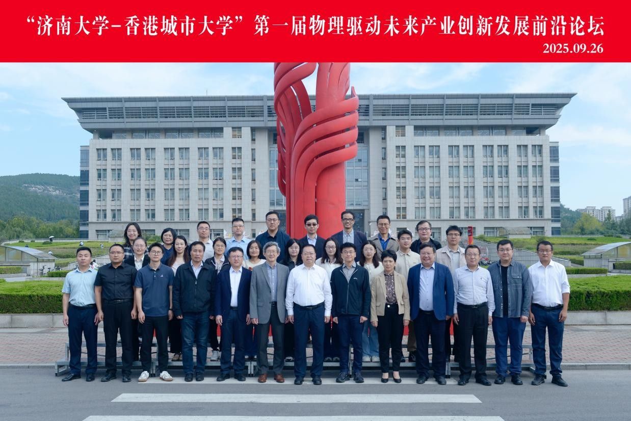 金秋九月,硕果盈枝。9月26日上午,“济南大学-香港城市大学”第一届物理驱动未来产业创新发展前沿论坛在第五学术报告厅举办。活动前,校长刘宗明会见了香港城市大学任洋教授一行。学校党委副书记商华,党委常委、统战部部长徐庆国出席会议。材料科学与工程学院、机械工程学院、信息科学与工程学院、水利与环境学院及物理科学与技术学院师生代表参加论坛,九章(济南)量子科技有限公司总经理徐佳敏应邀出席。论坛由物理科学与技术学院院长徐锡金主持。